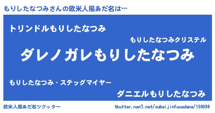 | 女子向けラノベタイトル風あだ名 | 『乙女ゲームの破滅フラグしかない悪役もりしたなつみに転生してしまった…』 |