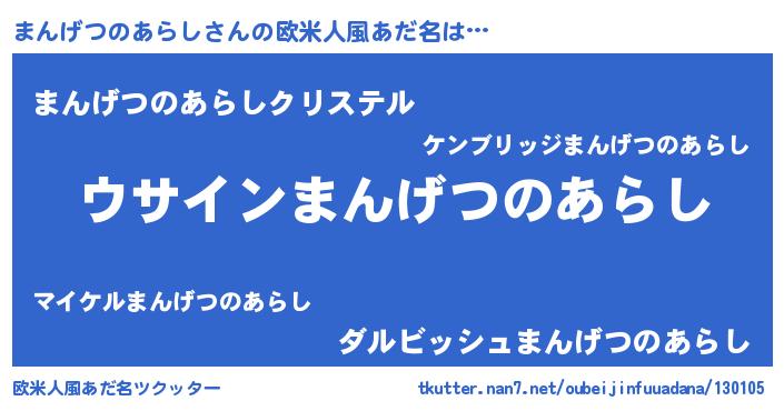 | ポケモン風あだ名 | 『ヒマンゲツノアラシ』『マンゲダネ』 |