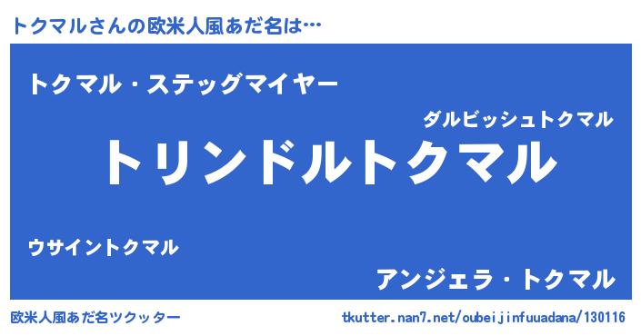 | 男性向けラノベタイトル風あだ名 | 『転生したらトクマルだった件』 |