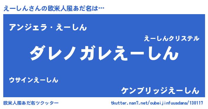 | 男性向けラノベタイトル風あだ名 | 『魔弾の王とえーしん』 |