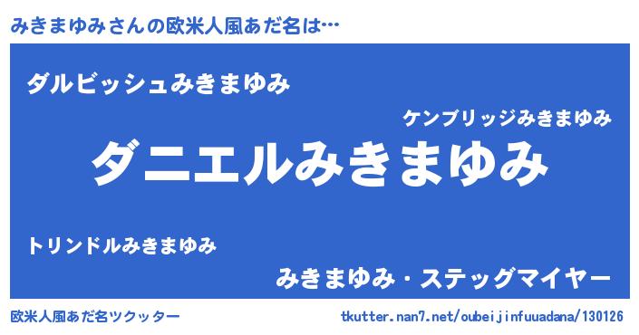 | 男性向けラノベタイトル風あだ名 | 『おまえをオタクにしてやるから、俺をみきまゆみにしてくれ! 』 |