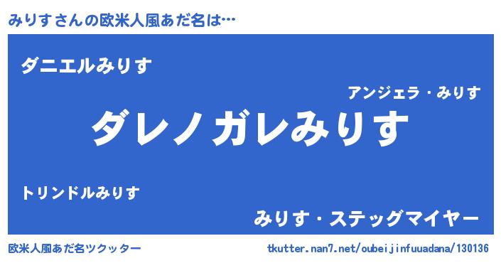 | 意味不明あだ名 | 『住所不定無職みりす(1歳)』 |