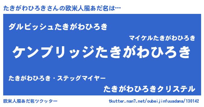 | 可愛いあだ名 | 『たきうちぇる』『たきがわひろきママ』 |