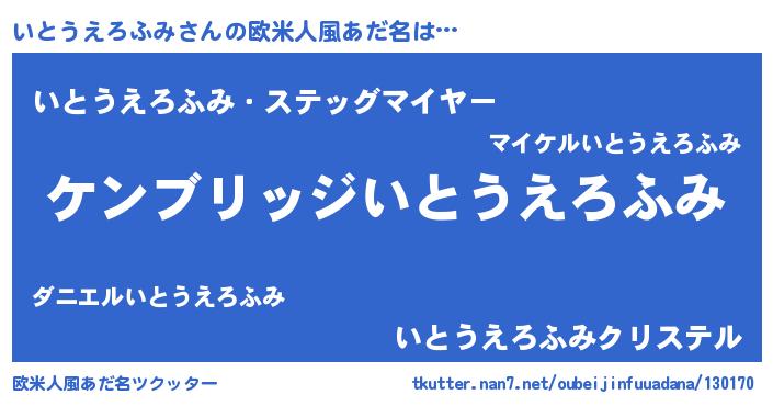| 女子向けラノベタイトル風あだ名 | 『いとうえろふみストレイドッグス』 |