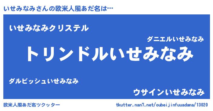 | 男性向けラノベタイトル風あだ名 | 『転生したらいせみなみだった件』 |