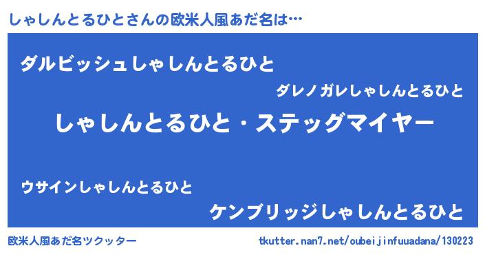 | ヘコむあだ名 | 『しゃしんとるひと(笑)』『しゃっぺ』 |