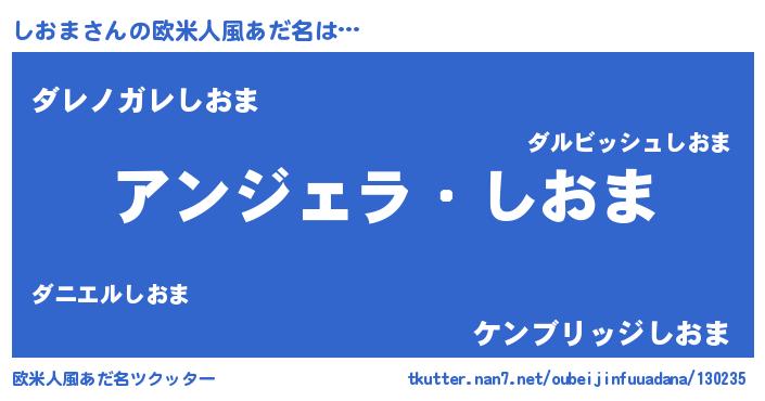 | 男性向けラノベタイトル風あだ名 | 『しおまに滅ぼされるだけの簡単なお仕事です』 |