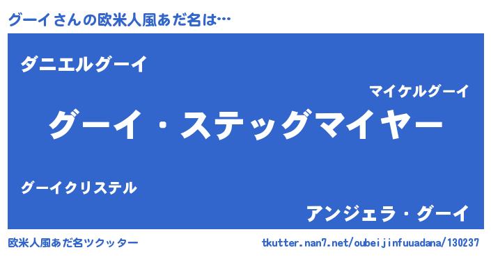 | 男性向けラノベタイトル風あだ名 | 『緋弾のグーイ』『はたらくグーイさま!』 |