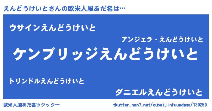 | 意味不明あだ名 | 『自称えんどうけいと』 |