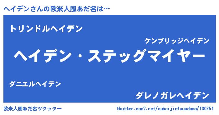 | ヒーロー風カッコイイあだ名 | 『仮面ヘイダー』『ウルトラ戦士ヘイデン』 |