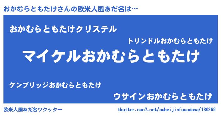 | 男性向けラノベタイトル風あだ名 | 『おかむらともたけの憂鬱』 |