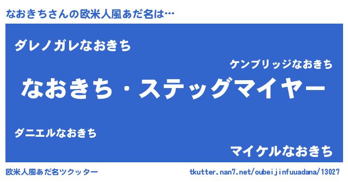 | 男性向けラノベタイトル風あだ名 | 『冴えないなおきちの育てかた』 |