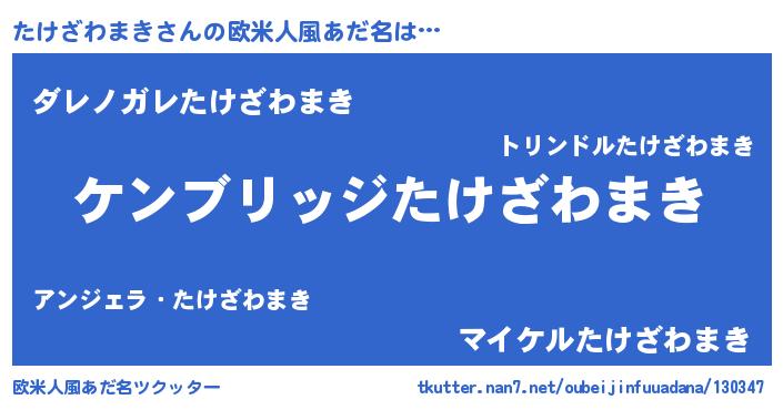 女子向けラノベタイトル風あだ名 | 『たけざわまきなんてお断りですっ。』 |
