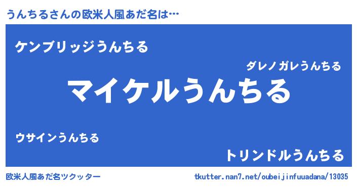 | 男性向けラノベタイトル風あだ名 | 『うんちるの憂鬱』『ウンチルスレイヤー』 |