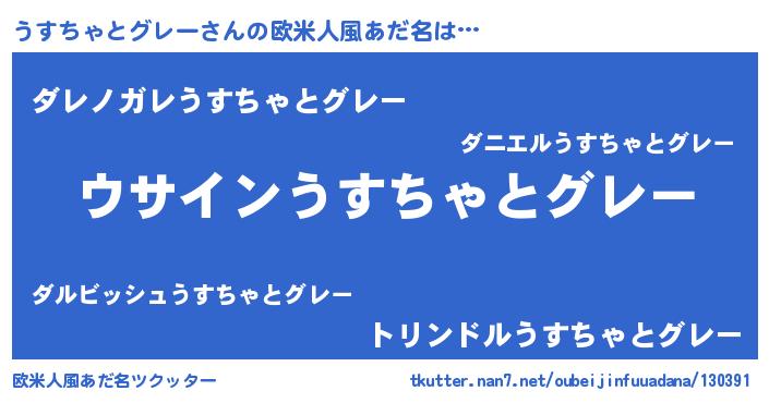 | 男性向けラノベタイトル風あだ名 | 『ダンジョンにうすちゃとグレーを求めるのは間違っているだろうか』 |