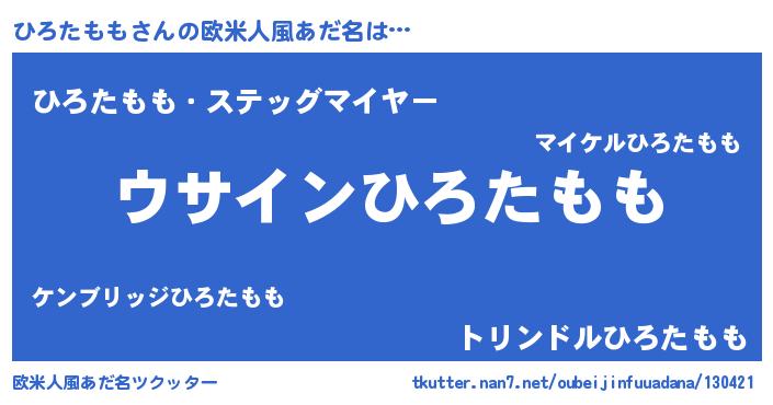| 男性向けラノベタイトル風あだ名 | 『ひろたももの嫁は女の子じゃないと思った?』 |