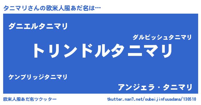 | 男性向けラノベタイトル風あだ名 | 『タニマリスレイヤー』 |