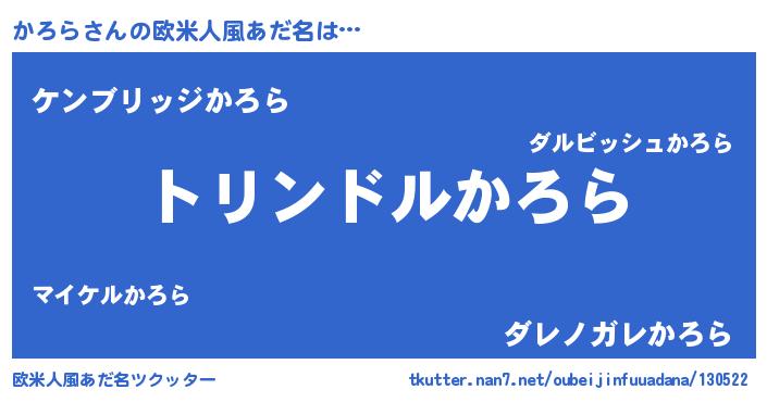 | ヘコむあだ名 | 『かろら(笑)』『かろにゅー』 |