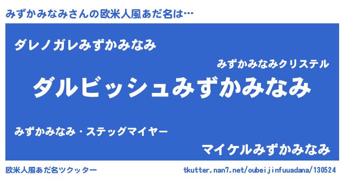 | ヘコむあだ名 | 『みずかみなみ(笑)』『みずにゅー』 |