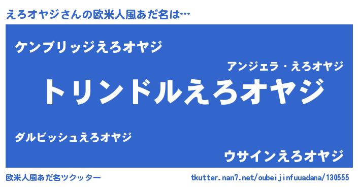 | 男性向けラノベタイトル風あだ名 | 『えろオヤジ~年齢イコール彼女いない歴の魔法使い~』 |