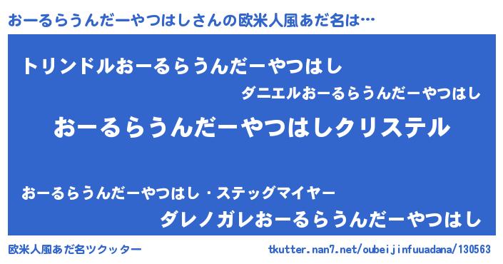 | 意味不明あだ名 | 『おーるらうんだーやつはしフォーエバー』 |
