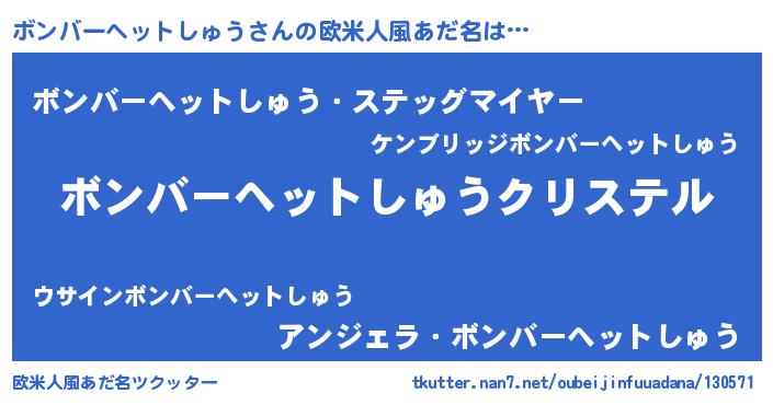 | 意味不明あだ名 | 『ボンバーヘットしゅうフォーエバー』 |