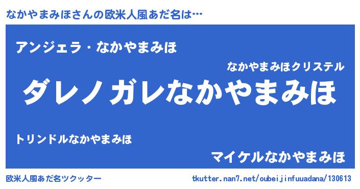 | 男性向けラノベタイトル風あだ名 | 『魔弾の王となかやまみほ』 |