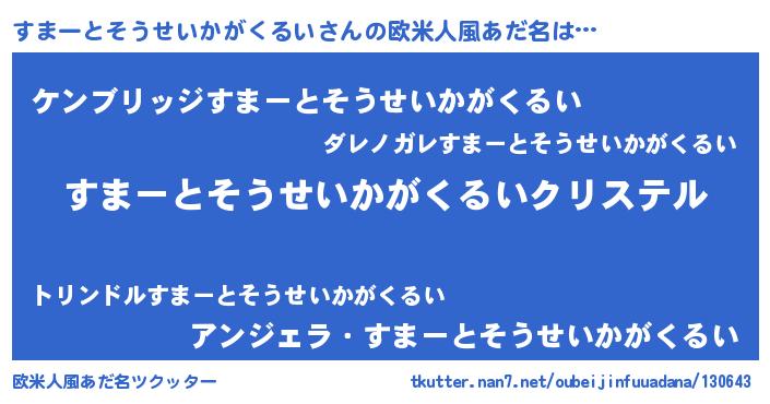 | 意味不明あだ名 | 『すまーとそうせいかがくるいフォーエバー』 |