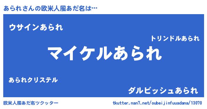 | 意味不明あだ名 | 『ペロリンあられ』『永久保存あられ』 |