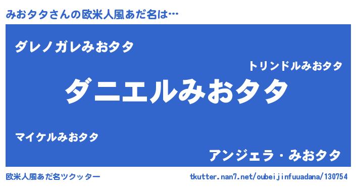| 男性向けラノベタイトル風あだ名 | 『おまえをオタクにしてやるから、俺をみおタタにしてくれ! 』 |
