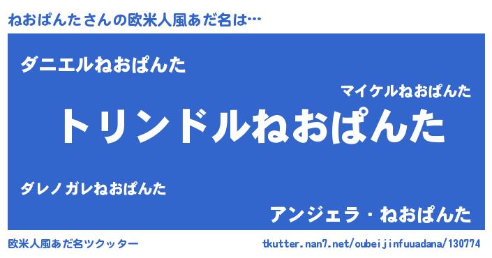 | 男性向けラノベタイトル風あだ名 | 『ねおぱんた~年齢イコール彼女いない歴の魔法使い~』 |
