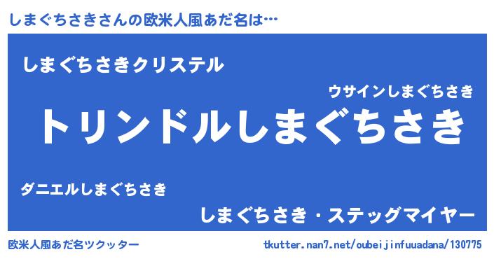 | 男性向けラノベタイトル風あだ名 | 『シマグチサキスレイヤー』 |