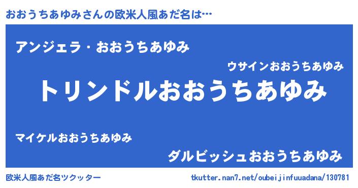 | 女子向けラノベタイトル風あだ名 | 『おおうちあゆみの玉の輿計画!』 |
