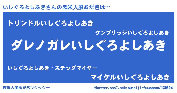 | 男性向けラノベタイトル風あだ名 | 『この素晴らしい世界にいしぐろよしあきを!』 |