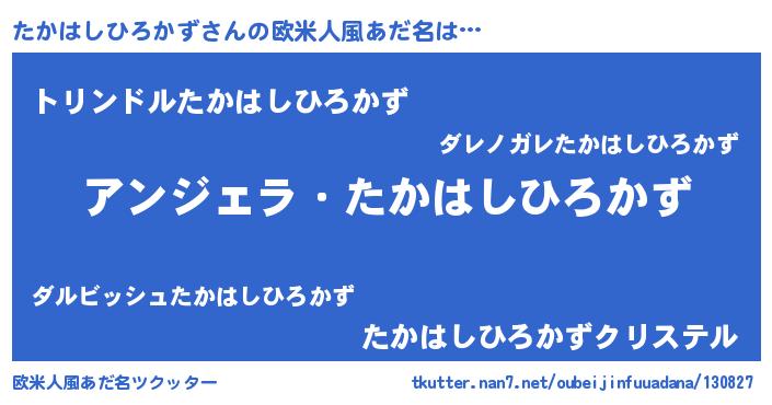 | 男性向けラノベタイトル風あだ名 | 『たかはしひろかずに滅ぼされるだけの簡単なお仕事です』 |