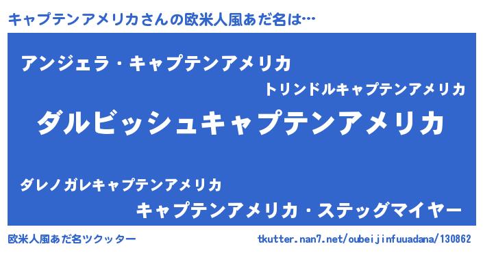 | 意味不明あだ名 | 『永久保存キャプテンアメリカ』 |