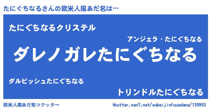 | 男性向けラノベタイトル風あだ名 | 『この素晴らしい世界にたにぐちなるを!』 |