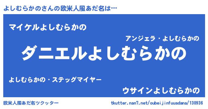 | 女子向けラノベタイトル風あだ名 | 『よしむらかの夫妻のなれそめ』 |