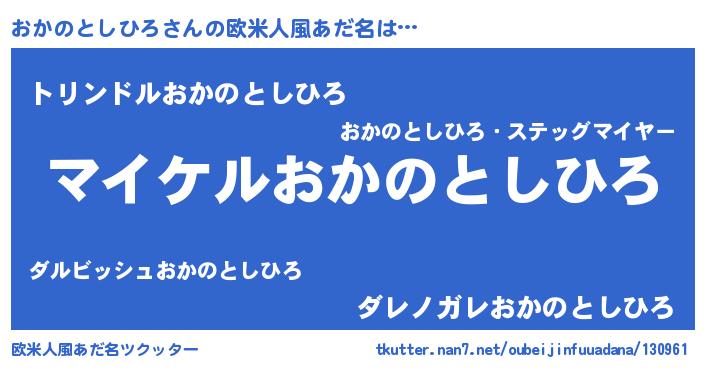 | 胡散臭い通販商品みたいなあだ名 | 『必ず成功する霊験あらたかなお札…その名も「おかのとしひろ」』 |