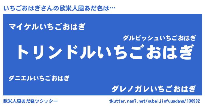 | 男性向けラノベタイトル風あだ名 | 『いちごおはぎ~年齢イコール彼女いない歴の魔法使い~』 |
