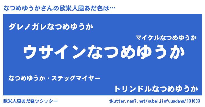 | ポケモン風あだ名 | 『ヒナツメユウカ』『ナーツイ』 |