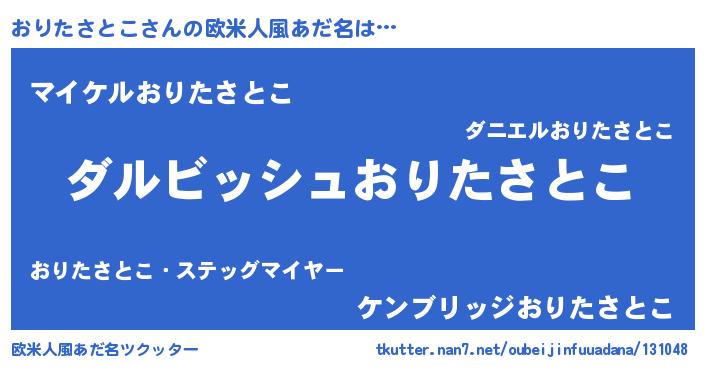 | ヒーロー風カッコイイあだ名 | 『ネオオリタサトコ』『暗黒騎士オリ』 |