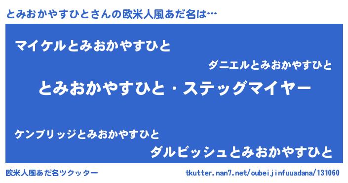 | 男性向けラノベタイトル風あだ名 | 『うちのとみおかやすひとが世界を掌握している!』 |
