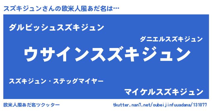 | 男性向けラノベタイトル風あだ名 | 『スズキジュンの嫁は女の子じゃないと思った?』 |