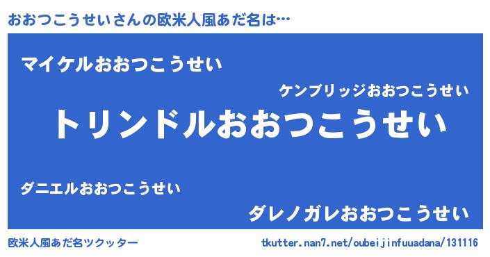 | 胡散臭い通販商品みたいなあだ名 | 『必ず成功するブレスレット…その名も「おおつこうせい」』 |