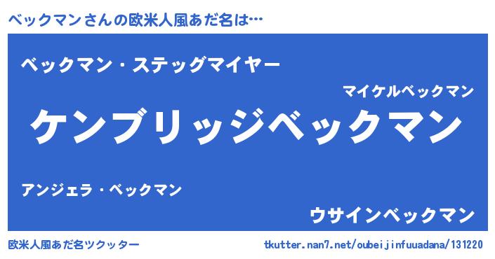 | 女子向けラノベタイトル風あだ名 | 『ベックマンなんてお断りですっ。』 |