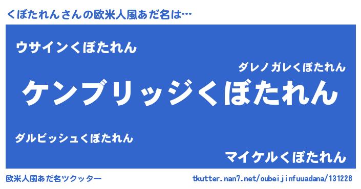 | 男性向けラノベタイトル風あだ名 | 『Re:くぼたれんから始める異世界生活』 |