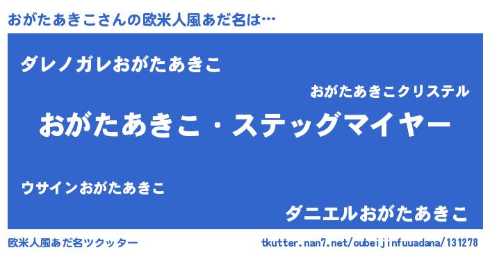 | 意味不明あだ名 | 『住所不定無職おがたあきこ(77歳)』 |