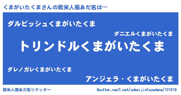 | 胡散臭い通販商品みたいなあだ名 | 『絶対に幸福をもたらす水素水…その名も「くまがいたくま」』 |