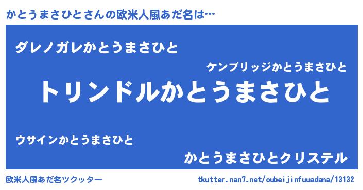 | 男性向けラノベタイトル風あだ名 | 『カトウマサヒトスレイヤー』 |